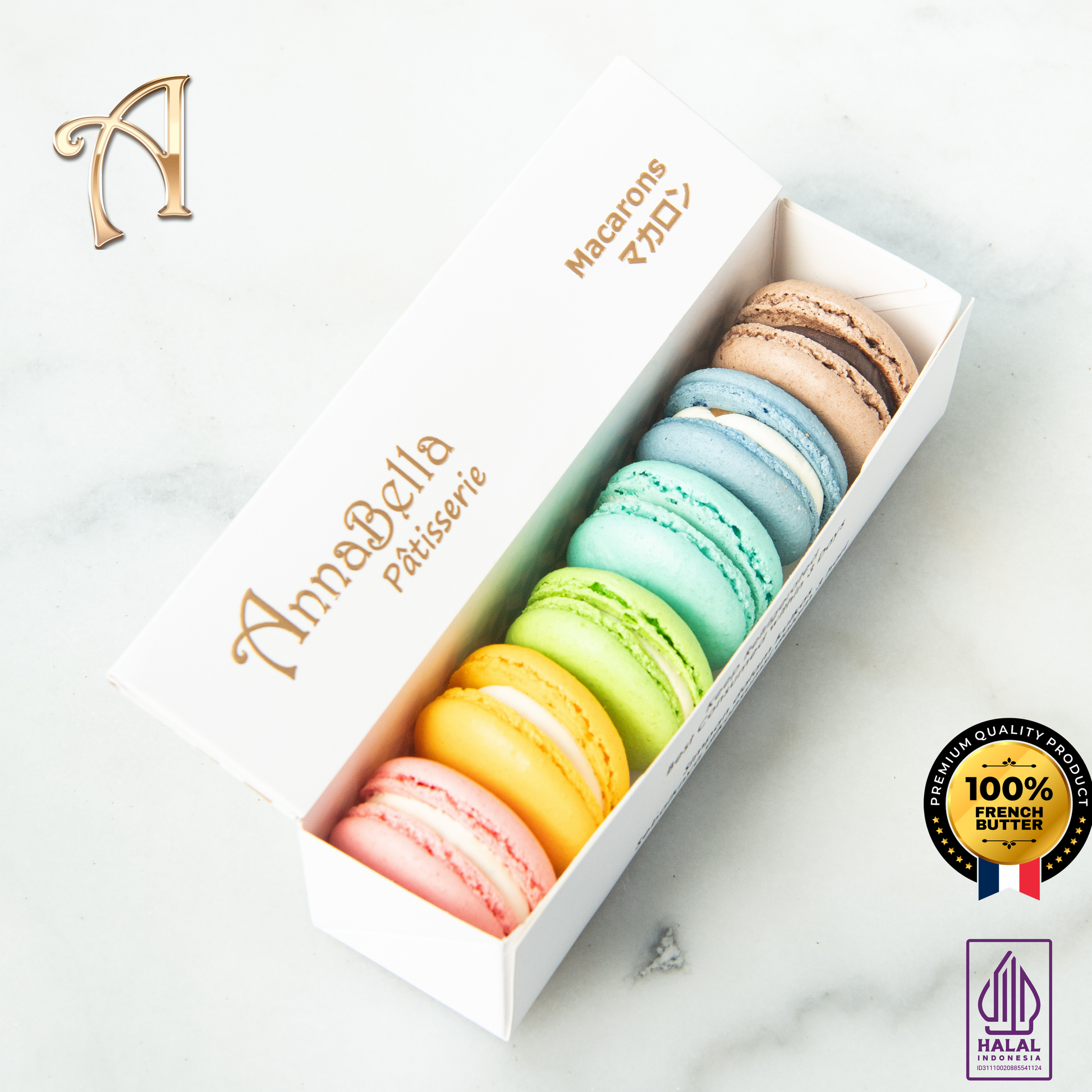 • Macarons adalah spesialisasi kami dan sangat populer di kalangan semua penggemar kami, Anda dapat menambahkan lebih banyak macaron dengan pesanan ini dengan harga khusus.  Rasa macarons per kotak, tidak perlu pilihan